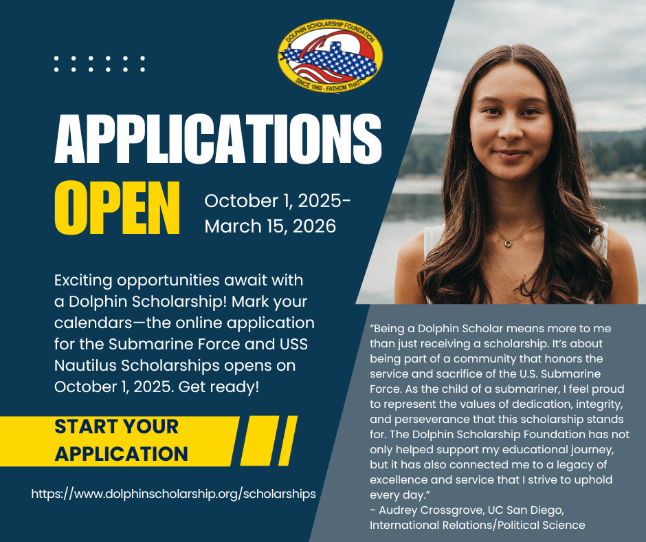 Your gift is creating life-changing opportunities for the children of the Submarine Force. Together we are easing the financial burden of continuing education for over 100 scholars worldwide. Thank you for your support.